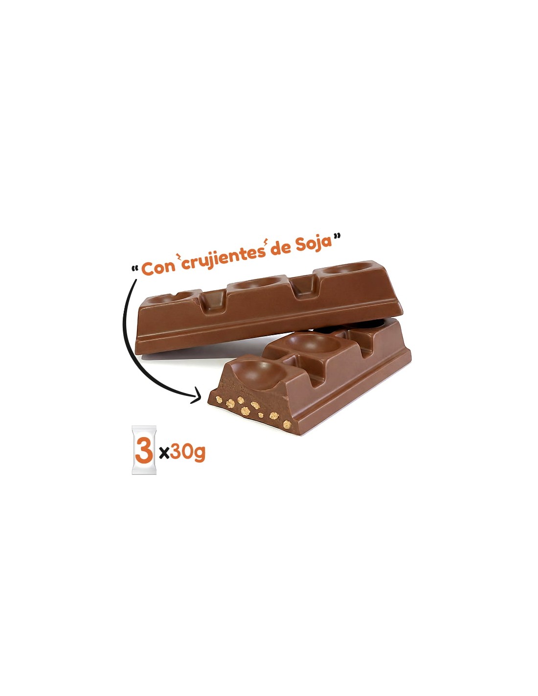 Contiene 3 chocolatinas en su bolsa individual de 30 g cada unidad.