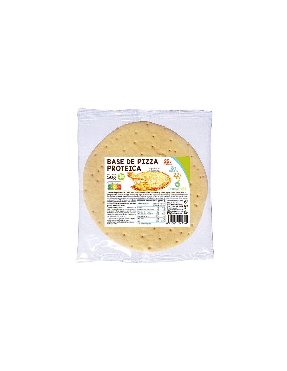 La Base de Pizza Proteica es una fina base de 17 cm de diámetro aproximadamente, con un 25% de proteína, 22% de fibra y sólo un 8% de carbohidratos, ideal para cuidar tu dieta y tu línea. Nuestra Base de Pizza Proteica es un alimento apto para dieta KETO, Proteica y LOW CARB, recomendado para la pérdida de peso, mantener la línea, e igualmente una opción perfecta para deportistas o personas con diabetes.