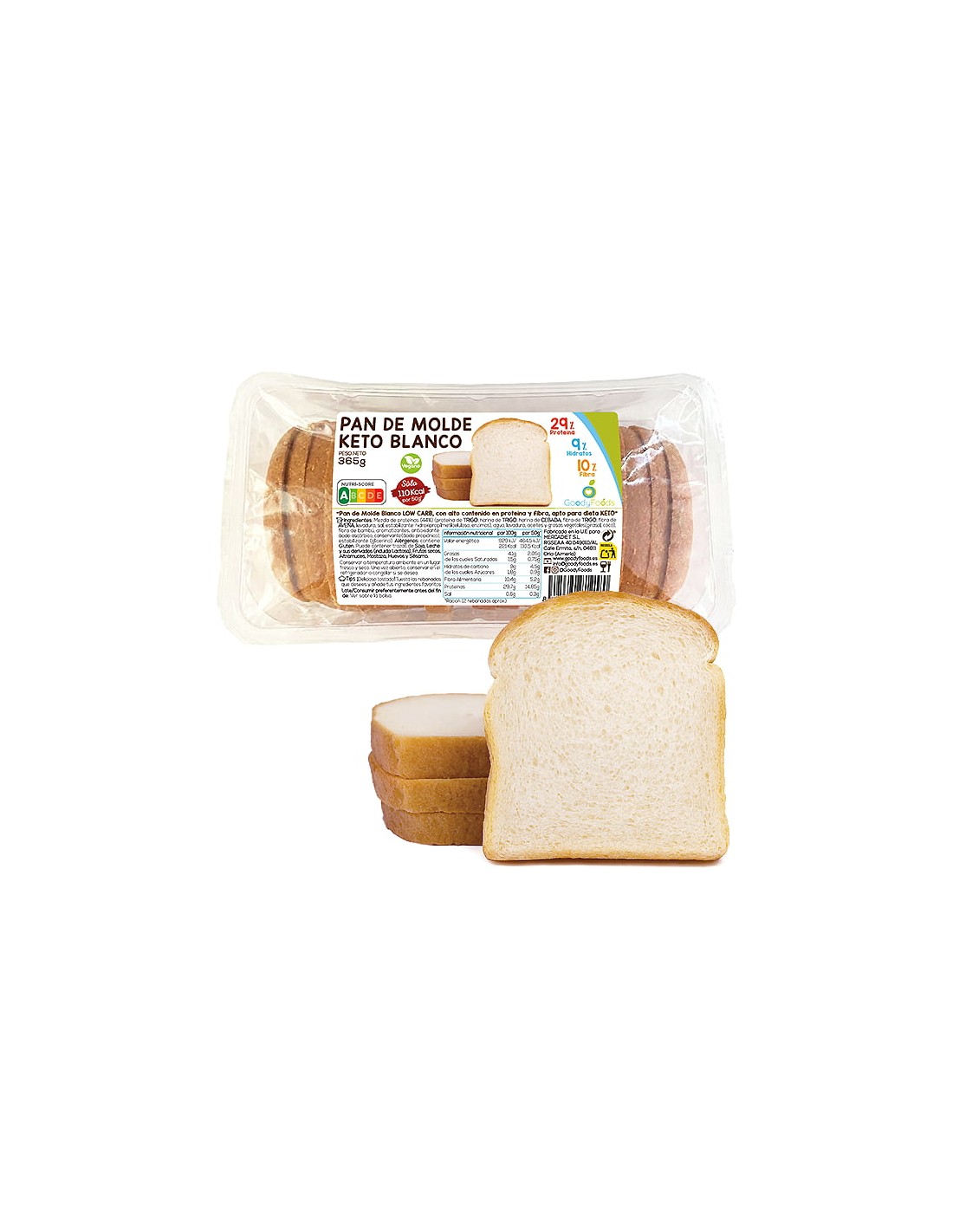 El Pan de Molde Keto Blanco tiene una textura tierna y esponjosa, y aporta un 29.7% de proteína, 10.4% de fibra, tan sólo 9% de carbohidratos, y ya viene pre cortado en rebanadas para hacer deliciosos sándwiches, tostadas o acompañar a tus comidas. El Pan de Molde Keto Blanco es apto para dieta KETO, Proteica y otras dietas bajas en carbohidratos y una alternativa para reducir el consumo de carbohidratos simples y azúcares a la vez que se suma proteínas y fibra para seguir una dieta equilibrada