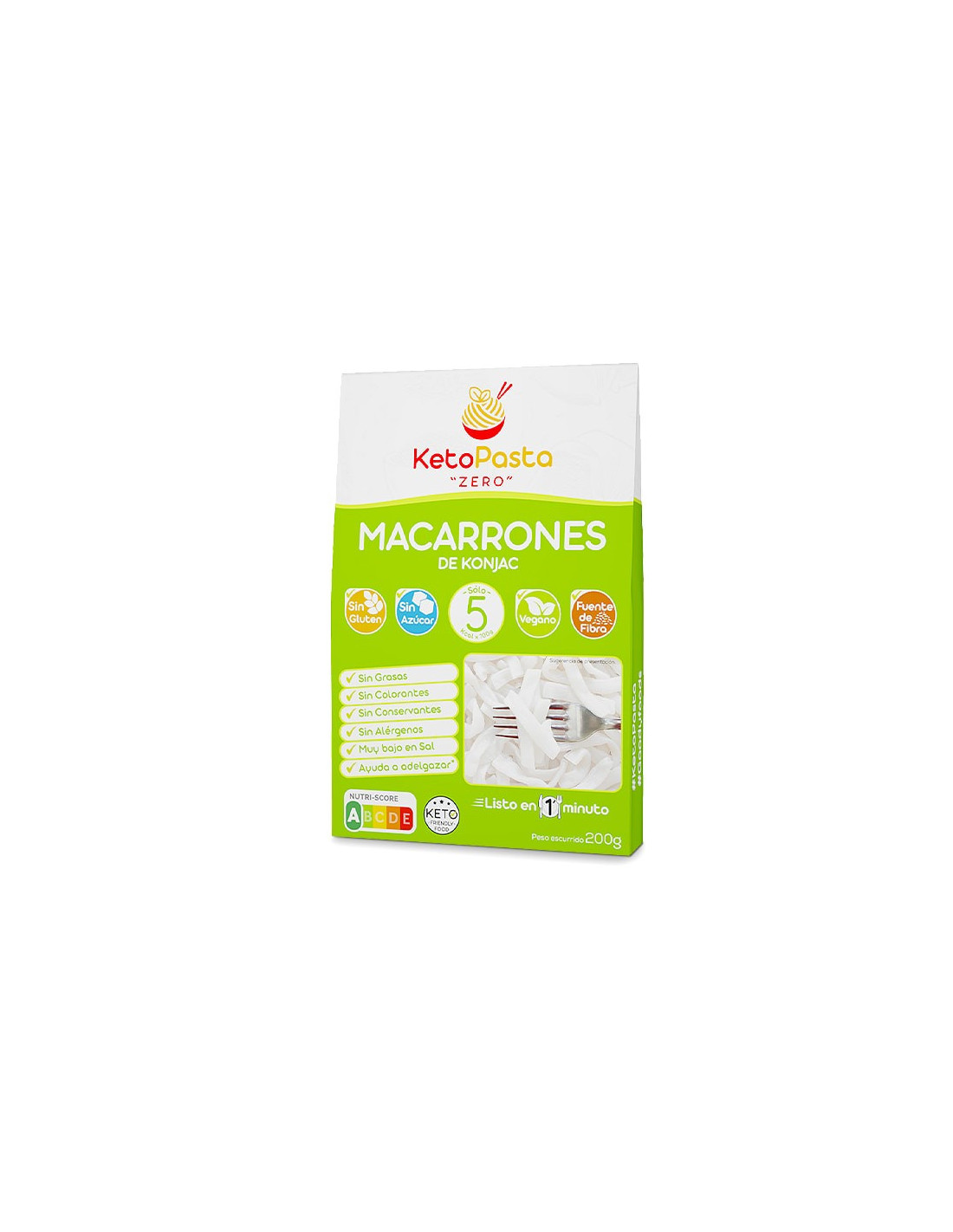 Los Macarrones Konjac de nuestra línea "KetoPasta ZERO" solo tienen 5 Kcal por cada 100g, sin azúcar, sin grasas, sin conservantes, sin colorantes ni alérgenos, prácticamente sin carbohidratos, fuente de fibra, Vegano y listo para comer en 1 minuto. Los Macarrones konjac son además un alimento saciante que te ayudará a ahorrar cientos de calorías de una forma saludable.