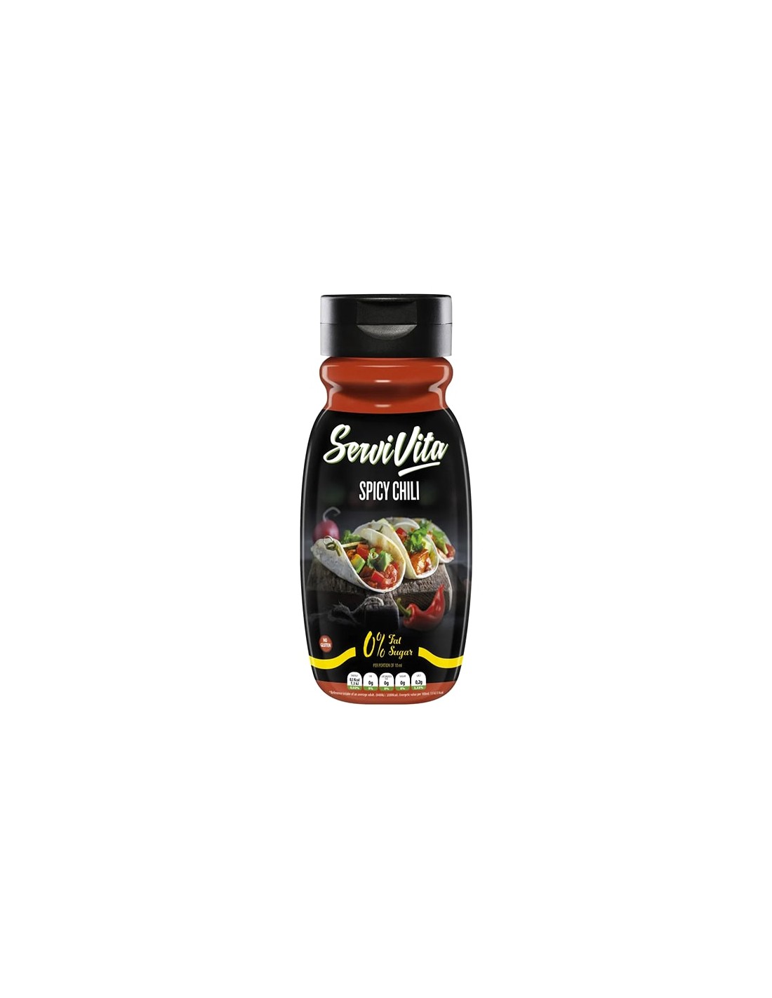 La Salsa Chili picante Servivita es una opción para ahorrar gran cantidad de calorías en platos sin renunciar a al sabor. Cada bote de contiene unas 30-32 raciones de 10 ml, el cual tiene un sistema anti goteo para servir la cantidad que necesites.