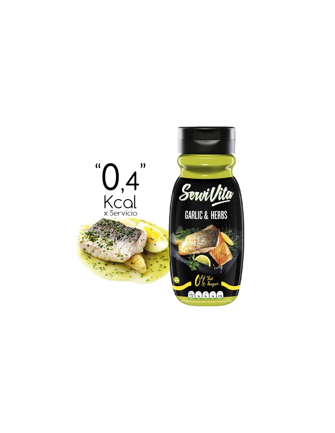 La Salsa de Ajo y Hierbas Servivita es una alternativa para reducir el consumo de calorías en cualquier plato aportando sabor. Cada bote de contiene unas 30-32 raciones de 10 ml, el cual tiene un sistema anti goteo para servir la cantidad que necesites.