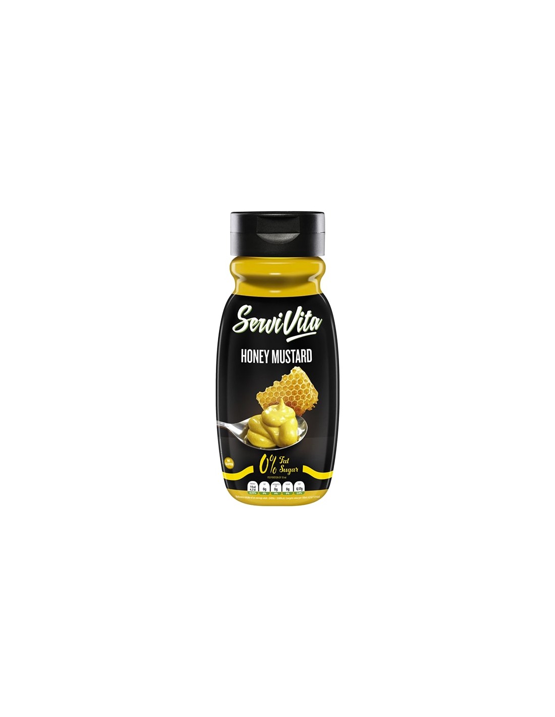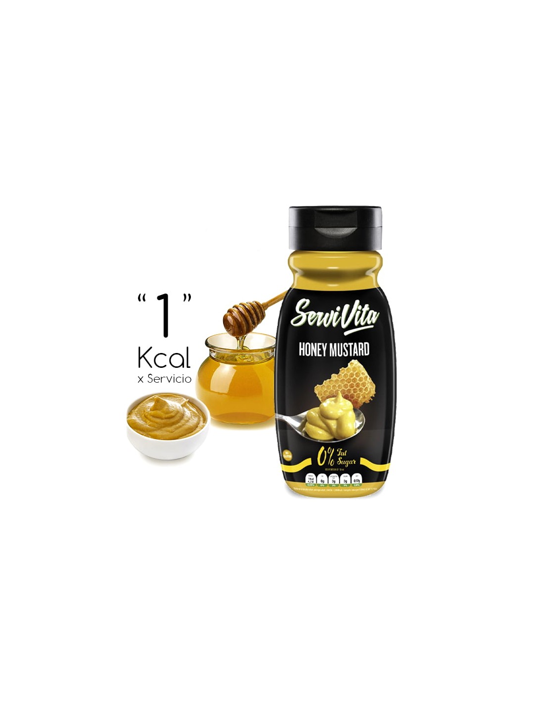 La Salsa Miel y Mostaza Servivita, aporta un rico sabor con un toque dulce a hamburguesas, sándwiches, carnes o verduras, con solo 1 Kcal por ración de 10 ml, muy bajo en hidratos de carbono, sin grasas, sin azúcar y sin gluten. La Salsa Miel y Mostaza Servivita tiene unas propiedades que la hacen apta para dieta KETO y dietas Low Carb, además de ser una alternativa para quien desee reducir el número de calorías en sus platos.