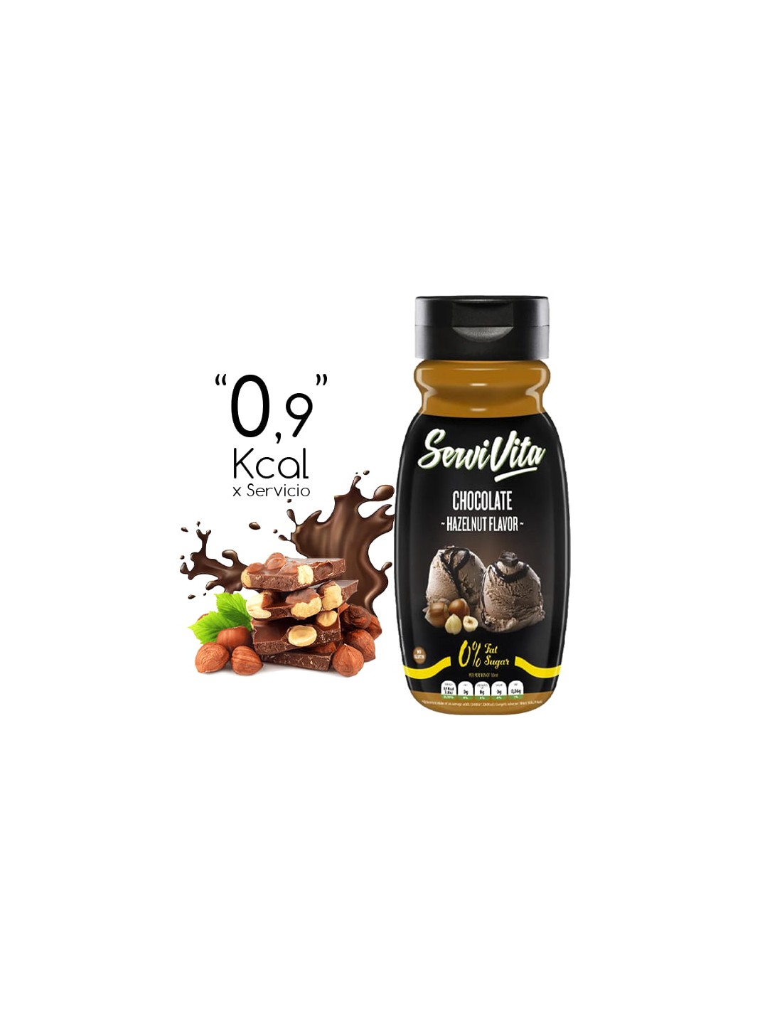 El Sirope de Chocolate y Avellanas Servivita viene en un bote con 30-32 raciones de 10 ml aproximadamente, el cual tiene un sistema anti goteo para servir la cantidad que desees. Además por sus caracteristicas no altera significativamente los niveles de glucosa siendo tolerado por personas con diabetes.